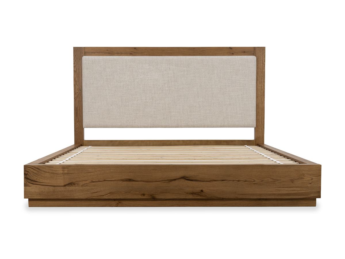The Oakley Bed brings a warm, rustic elegance to any bedroom with its blend of natural wood textures and soft upholstery. Available in King or Queen sizes, this bed features a rich rustic oak finish that highlights the natural grain of the rubberwood and Okoume veneers. The clean-lined frame is both sturdy and stylish, offering lasting durability and a look that complements farmhouse, transitional, or rustic-modern décor.Read More