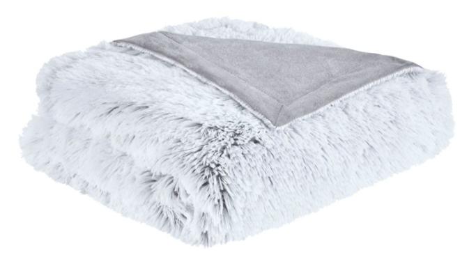 Irresistibly soft frosty print shaggy faux fur throw reverses to solid faux mink throw.