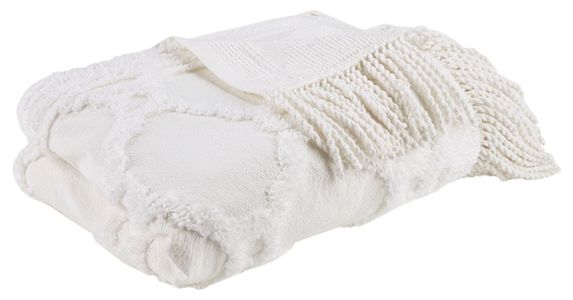 Add a cozy farmhouse touch to your home with the Madison Park Brianne Cotton Tufted Throw. This grey cotton throw flaunts a tufted geometric pattern with a 4 inch fringe on each end that adds texture and dimension, for a charming country allure. The 100% cotton fabric creates a lightweight and natural feel, making this cottage throw perfect for all seasons. Machine washable for easy care, this cotton tufted throw is great as a layering piece across your bed or can be hung like a tapestry for a chic accent on your wall.Read More