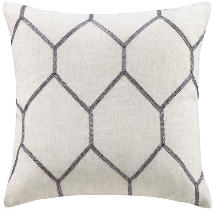 The Madison Park Brooklyn Decorative Pillow Pair provides a stylish and modern update for any room. A grey metallic geo pattern is embroidered on a natural textured fabric, for a subtle and perfect combination of urban glitz. Featured with a hidden zipper closure and a non-woven insert lining, these decorative pillows come as a pair for the perfect addition to decor. This pillow pair is also Oeko-Tex certified, meaning it does not contain any harmful substances or chemicals, ensuring quality comfort and wellness.Read More