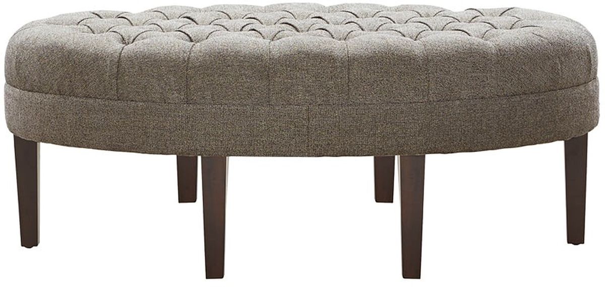 Prop up your feet, provide extra seating or set a tray across this button tufted top surfboard ottoman to use as the perfect centerpiece to any sitting room area. Assembly required.
