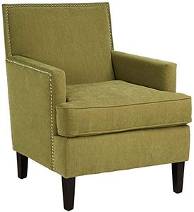 This track arm club chair with its sleek contemporary lines, exposed wood legs and added touch of individual nail head trim, gives it a charming new spin for a classic living room. Leg assembly required.