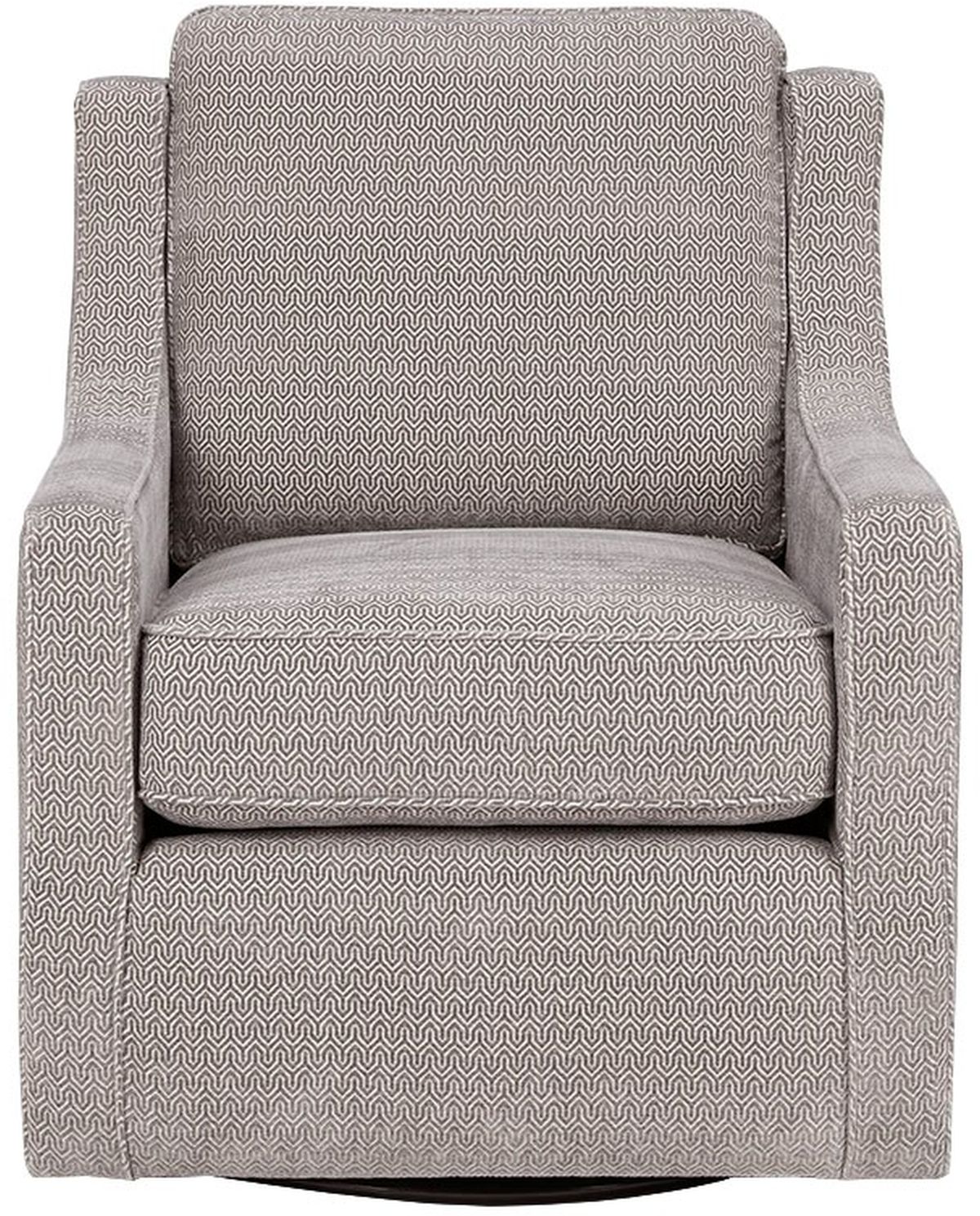 The Madison Park Harris Swivel Chair perfectly brings classic and contemporary together. Curved arms create a subtle wingback look, while giving the lounge chair simple and clean line. A high-density foam filling and solid wood frame provide exceptional comfort and support. The swivel feature allows the lounge chair to rotate on its black metal base. Upholstered in a grey fabric, this swivel chair matches beautifully with your home décor. No assembly required.