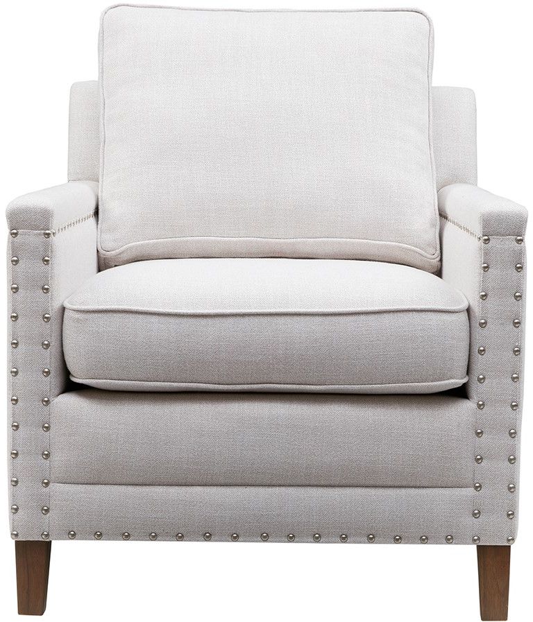 This sophisticated accent chair adds a cosmopolitan appeal to any home. With high-density foam cushions and nail head trim, this armchair doesn't sacrifice comfort for style. Its tailored and refined proportions make this lounge chair perfect for the living room or home office. Leg assembly is required.