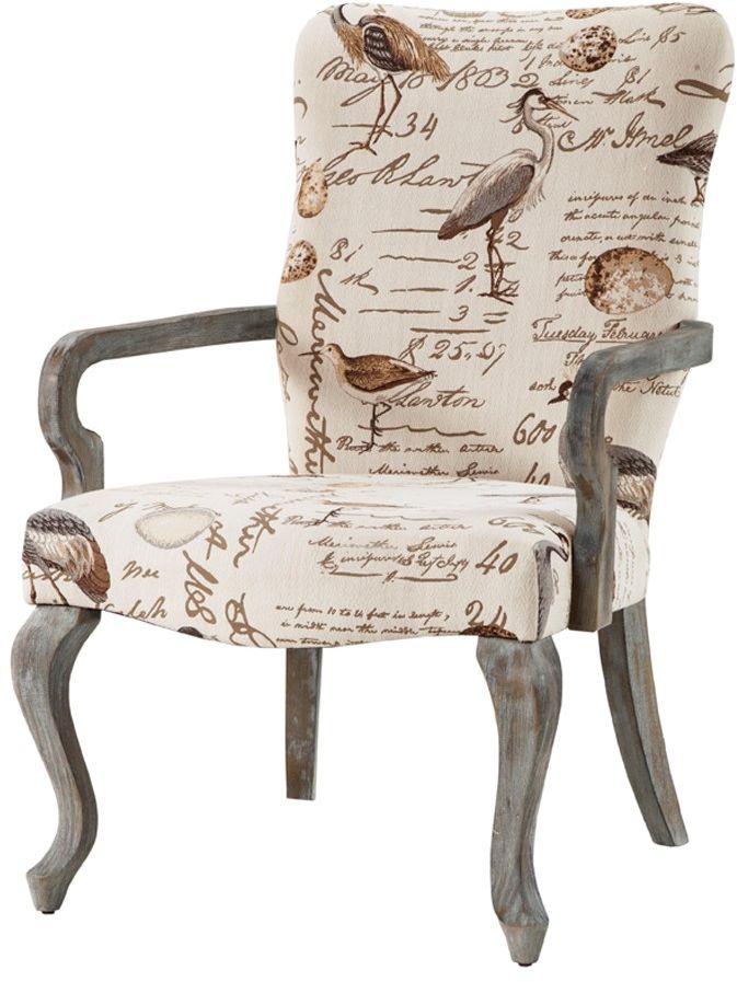 A Queen Anne inspired, high back occasional chair describes this elegant accent chair. Combining its shaped goose neck arms finished in a reclaimed gray mixed with trendy bird motif, makes this chair a definite show stopper.Read More