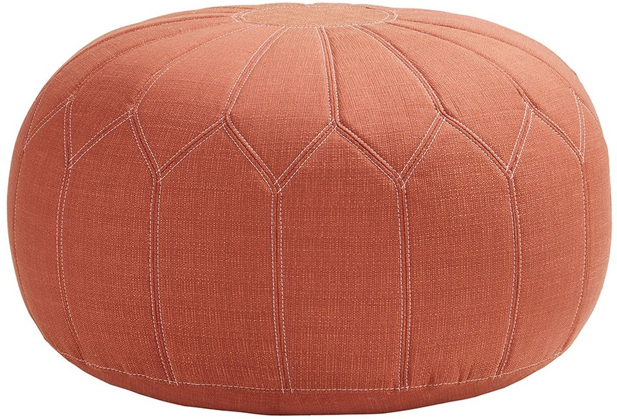 This oversized ottoman pouf will make a statement in any home. Filled with polystyrene beads, this round ottoman is soft to the touch and comfortable to sit on. Its distinctive stitching pattern and vibrant color adds style to any room. No assembly required.