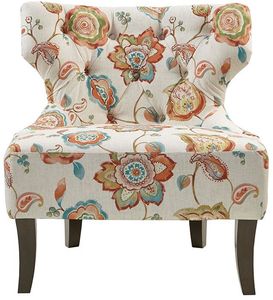 Complete your home decor with the modern charm of the Madison Park Erika Accent Chair. This armless accent chair features a low back and an attached cushion upholstered in a floral fabric, for a chic contemporary look. Solid wood legs complement the upholstery and provide a sturdy base.Read More