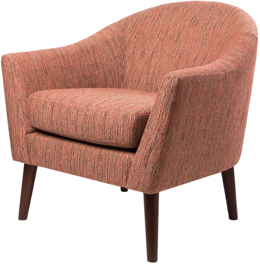 This chair flaunts its mid-century styling with its streamlined curves, graceful rounded tight back and a whisper of a track arm. Leg assembly required.