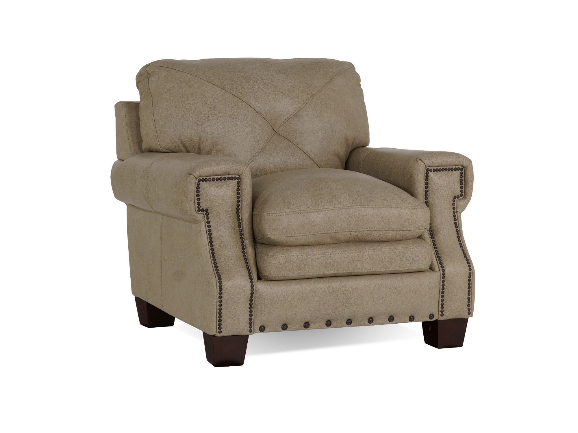 The Pilot Pebble Leather Chair is a statement of refined elegance and comfort, designed to enhance your living space. Upholstered in light brown top grain leather, this chair exudes a luxurious and timeless appeal. The addition of nailhead trim along the edges adds a touch of sophistication, elevating the overall aesthetic. The square-designed rolled arms provide a classic silhouette, while the pillow back with x detailing ensures both style and comfort. Whether used as a standalone piece or as part of a coordinated set, the Pilot Pebble Leather Chair brings a sense of warmth and sophistication to your home. Elevate your living room with this exquisite chair, where quality craftsmanship meets elegant design.Read More