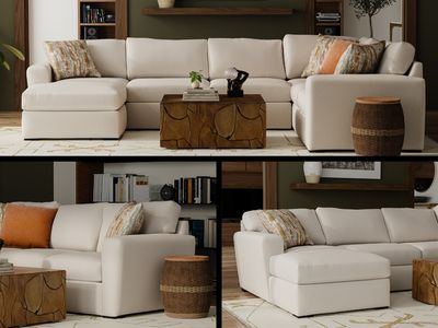 The Ryder 3 Piece Sectional blends contemporary style with everyday comfort, making it a versatile centerpiece for your living space. Upholstered in a soft light beige fabric made from 100% polyester, it offers a neutral palette that pairs effortlessly with a wide range of décor styles. Its U-shape design creates a spacious seating area that’s perfect for hosting gatherings, lounging with family, or stretching out with a good book. Modern track arms and a tailored silhouette give the Ryder a clean, sophisticated look, while the included throw pillows add a touch of casual elegance and extra comfort.Read More