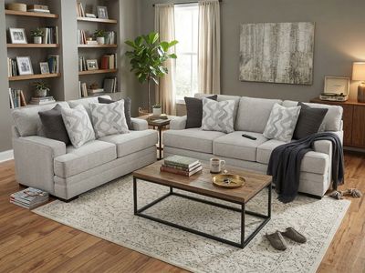 The Starla Sofa and Loveseat Set creates a cohesive, comfortable living room with a clean transitional look that feels both modern and timeless. The soft gray upholstery and tailored silhouettes make it easy to design around while offering plenty of seating for family and guests.Read More