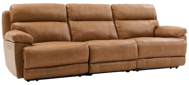 Relax in premium comfort with the Gatlin leather dual-power reclining sofa. Upholstered in rich butterscotch leather on all front-facing surfaces, with durable vegan leather on the sides and backs, this set blends luxury and practicality.Read More