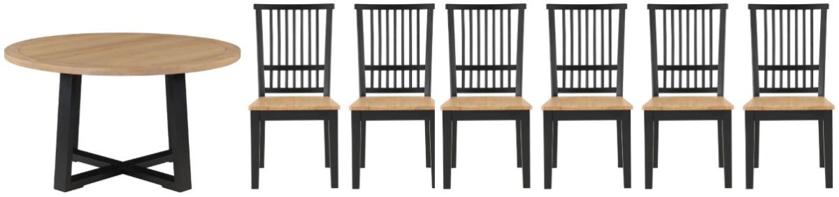 Modern meets farmhouse in the Magnolia 54-inch Round 7-Piece Dining Set. Large yet intimate, it’s perfect for morning breakfasts or supper club gatherings. The sand and black finish, combined with canted legs forming a sled base, creates a sleek and flowing design.Read More