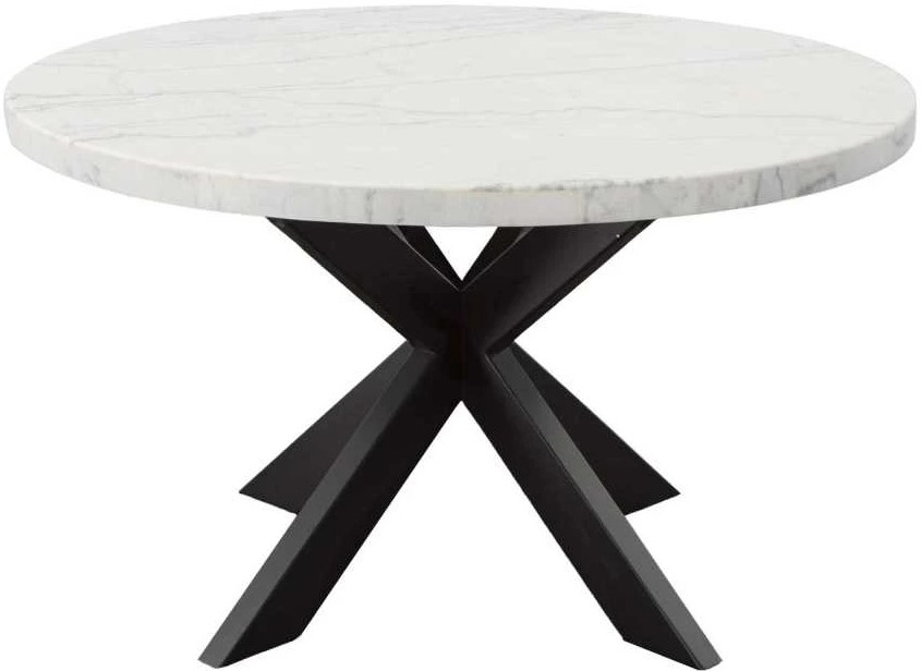 Round and flowing, the Xena 52" Round Marble Table is an elegant setting for an evening dinner or morning coffee. A beautiful round white marble top rests gracefully atop an ebony cross-timber plank table base in a mix of formal and informal designs that relaxes the table to a more casual presentation.Read More