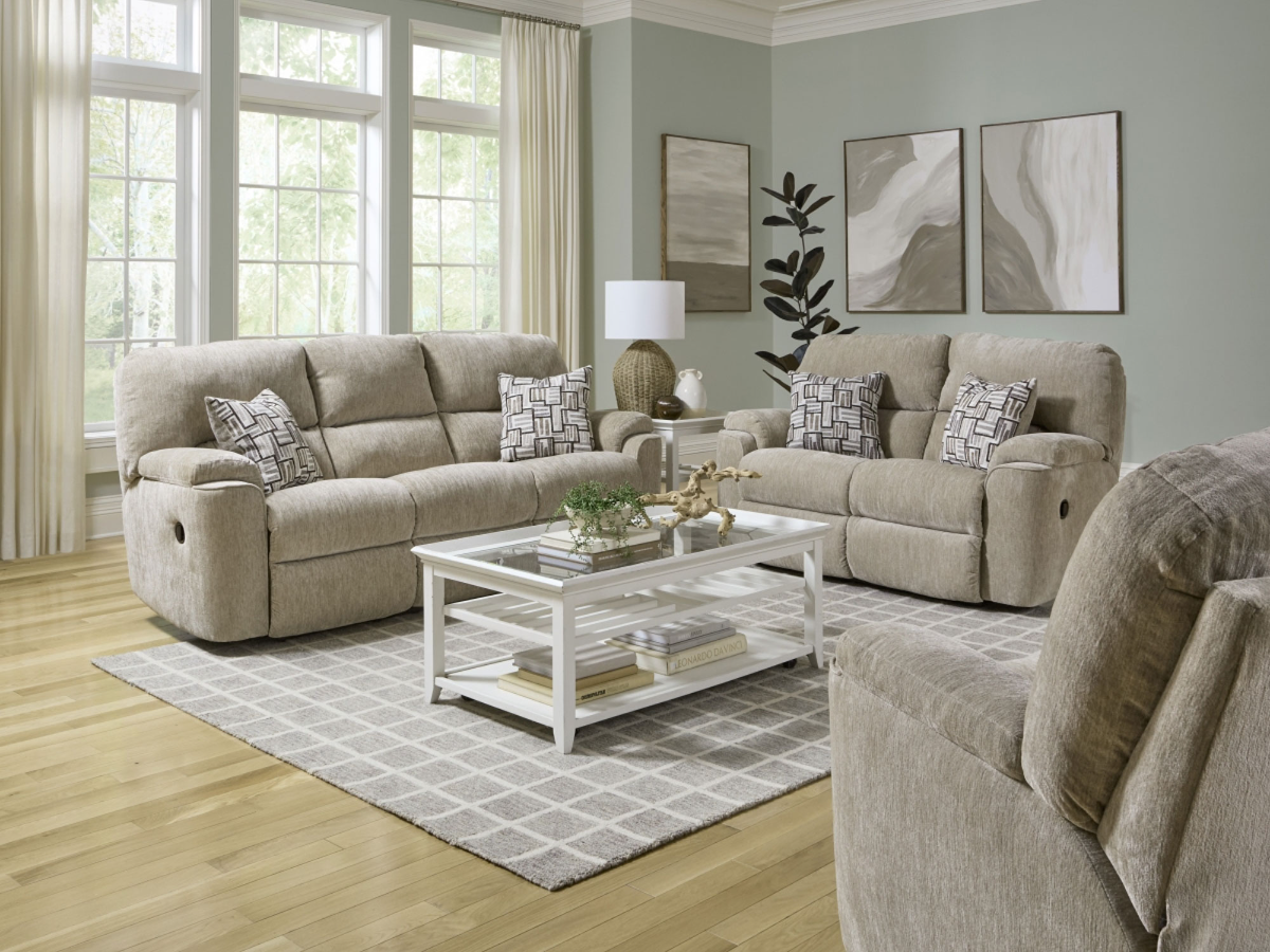 The Storm Sofa, Loveseat, and Recliner Set offers the perfect blend of plush comfort, classic style, and durable American-made construction. Available in two versatile fabric options—Sand, a soft light cream, or Mink, a rich charcoal—this coordinated living room set brings warmth and functionality to any home.Read More