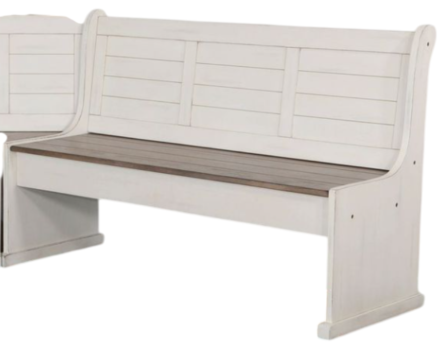 Blending classic charm with practical function, this breakfast nook long bench features a two-tone Buckskin and Marble White finish. Perfect for cozy corners, it includes under-seat storage and a reversible design for adaptable seating arrangements.Read More