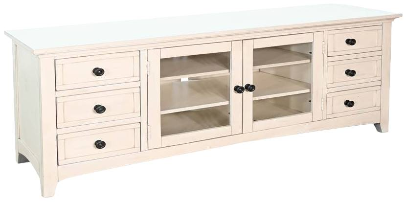 These media consoles will elevate your living space. They are meticulously crafted from mahogany solids and veneers. Featuring adjustable shelves and six drawers for all your media essentials. The elegant marble white finish adds a touch of sophistication and style.Read More