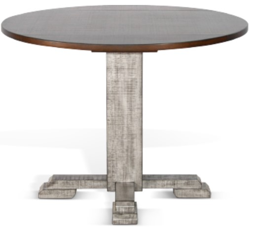 The Homestead Hills drop leaf table is beautifully crafted with mahogany solids and veneers and finished in a two-tone tobacco leaf and alpine grey finish that accentuates its beauty. This table is built to last and provides long-lasting beauty for your home.Read More