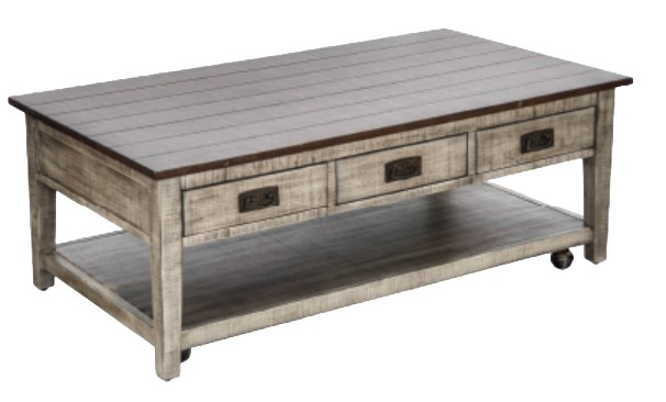 The Homestead Hills occasional are constructed with mahogany solids and veneers. The two-tone finish draws attention and creates a visually appealing contrast. Extra bottom shelves add more space for displaying. Multiple felt-lined drawers throughout help keep the tabletops presentable.Read More