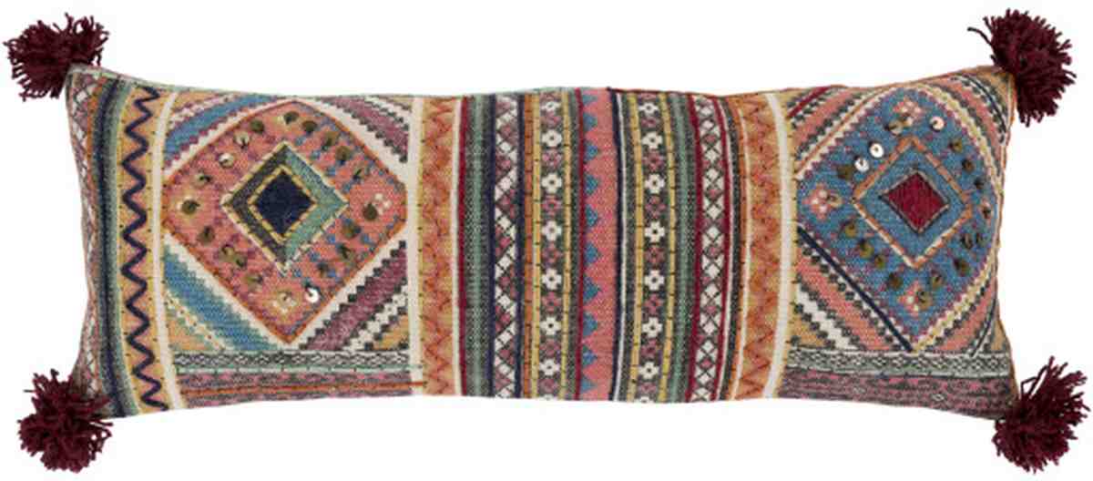 The Lena Coral 12" x 30" Toss Pillow from Surya features a tassel design and is made in IndiaRead More