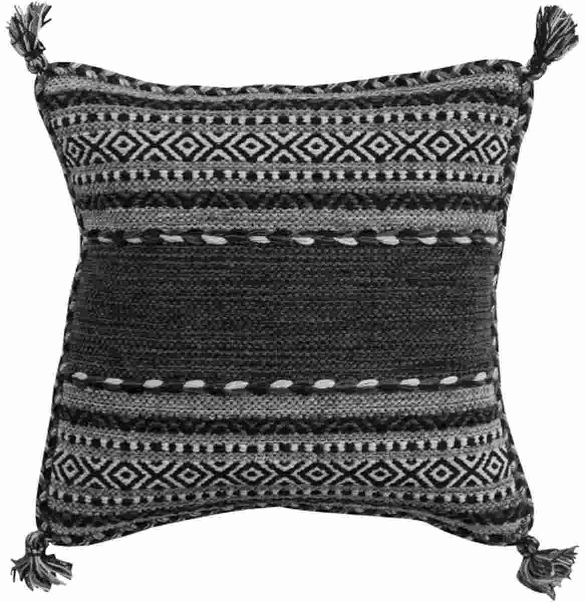 The Trenza Charcoal 18" x 18" Toss Pillow from Surya features a tassel design and is made in IndiaRead More