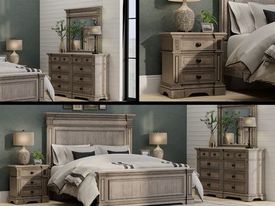 The Tulsa Bedroom Set combines traditional design, durable craftsmanship, and smart storage into a complete package that transforms your space with timeless appeal. Available in both king and queen sizes, the set includes the stately Tulsa Bed with its paneled headboard and footboard, detailed post accents, and a rich gray wash finish that highlights the natural wood grain. Complementing the bed is a matching dresser and mirror, along with a three-drawer nightstand, creating a unified and functional bedroom suite.Read More