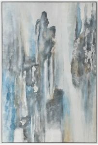 Abstract In Style, This Modern, Hand Painted Artwork On Canvas Features Muted, On-trend Shades. Mottled Hues Of Blue And Gray Are Paired With Charcoal And Cream Tones. Each Canvas Is Stretched And Attached To A Wooden Frame, Then Surrounded By A Petite, Silver Leaf Gallery Frame.Read More