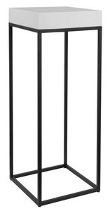 This modern plant stand combines a white marble look, atop a simple steel base finished in aged black.