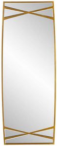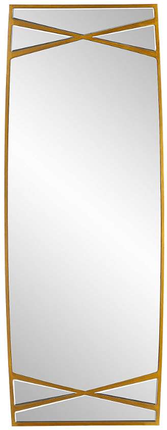 Sure to make an elegant statement, this oversized mirror sports a curved silhouette in an antique gold finish with crossed details. May be hung horizontally or vertically. Make a bold statement by incorporating this stunning home decor into your home.Read More